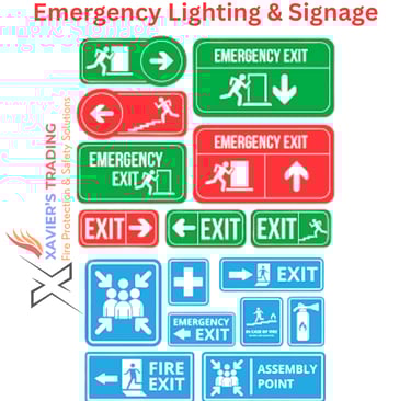 Emergency lighting & signage (exit lights, emergency bulkheads, photoluminescent signs)
