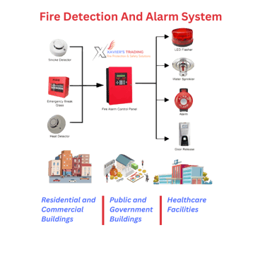 Fire detection & alarm systems (smoke/heat detectors, MCPs, hooters/sirens, control panels)
