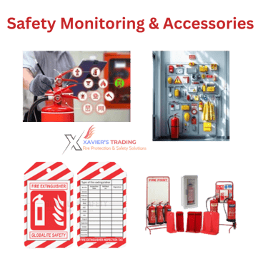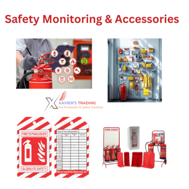 Safety monitoring & accessories (extinguisher stands/cabinets, safety cones, inspection tags, call point covers)